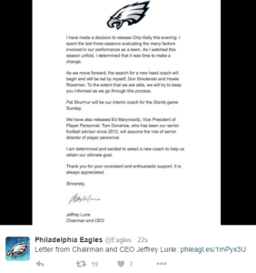 Eagles Reports: Decision to Fire Chip Was Made After a One-on-One Meeting Today Jim Adair • Dec 29th, 2015