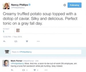 Trending Absolutely Savage Move by This Inquirer Editor to Tweet about Eating Caviar Just Days after Massive Layoffs Jim Adair • Nov 9th, 2015