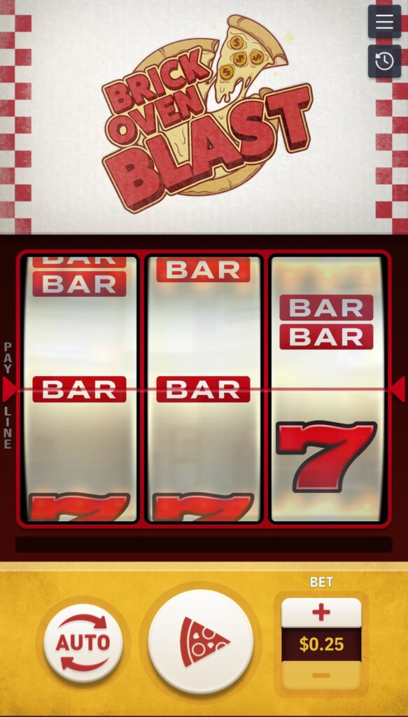 This stepper slot is three reels with one main payline in the middle, but options to win above and below the payline. It has a RTP of 95.0% and features classic stepper symbols like the 7s and bar stacks, while also including some pizza-themed icons to fit the title.