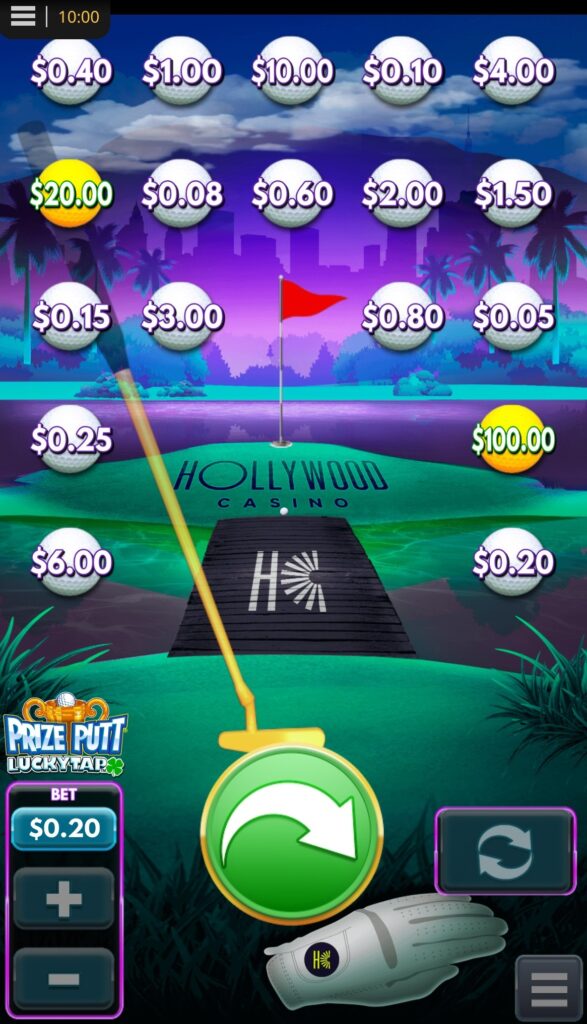 If looking for something a little different, Hollywood Casino can offer up the exclusive game, Prize Putt Lucky Tap.