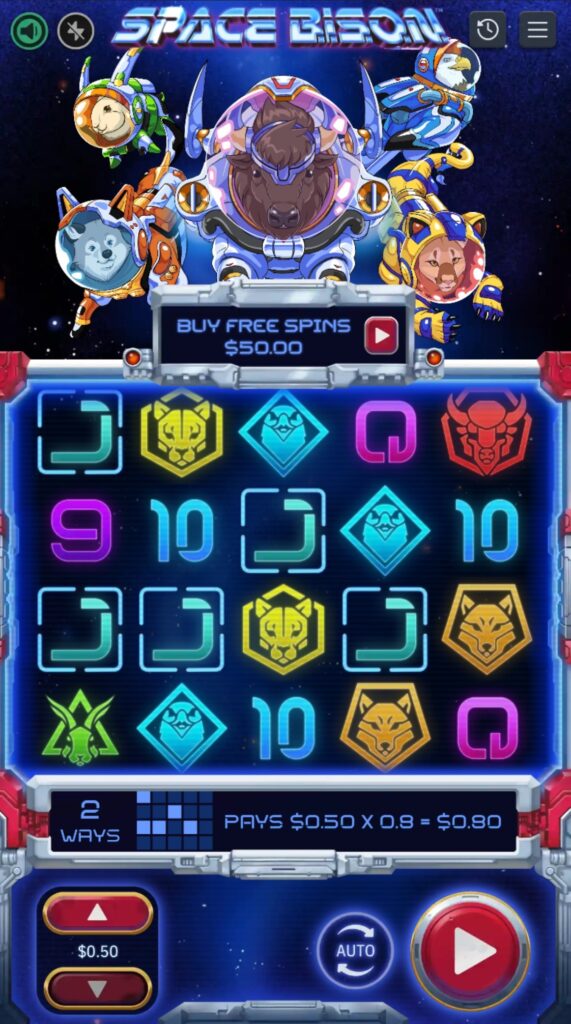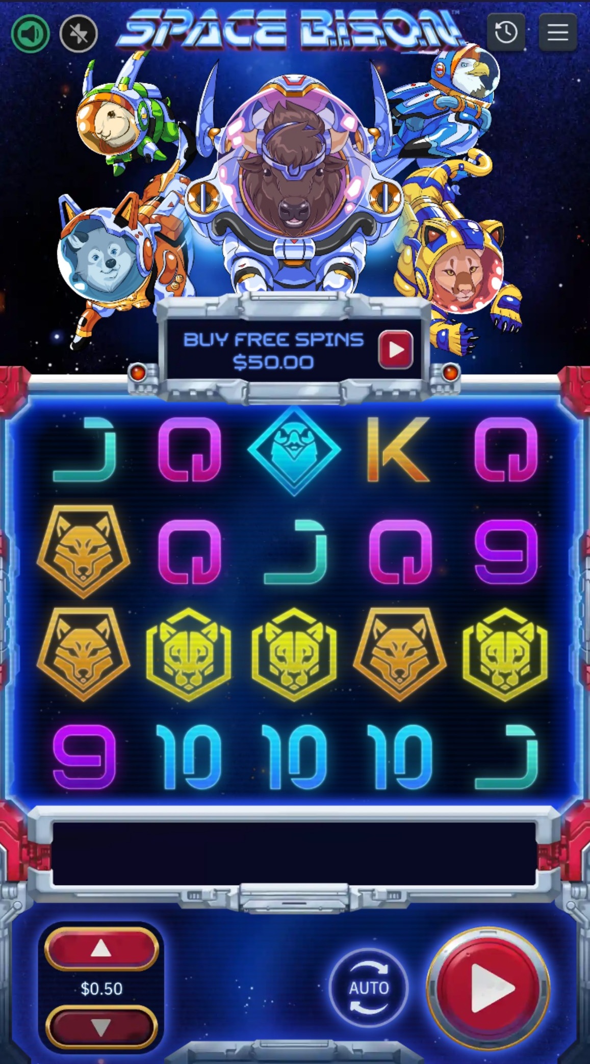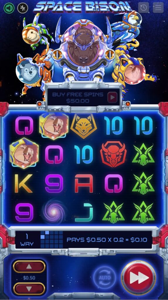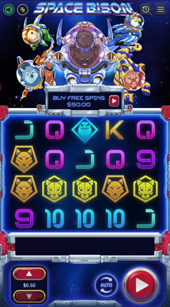 This 5-reel, 4-row games features an Avengers-style collection of floating animals in space. They are a bison, a wolf, a panther, an eagle, and a rabbit. The goal is to collect 3-5 symbols on one of the available paylines on each spin in order to win.