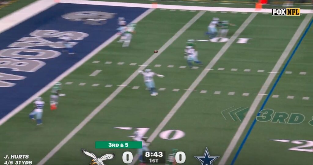 22) Zack Baun drops an interception then the Eagles jump offside and Dak heaves up a prayer that’s caught by CeeDee. Throw in a DPI and two injuries in the secondary, and Dallas goes halfway down the field in less than a minute. Then they score. Panic time!