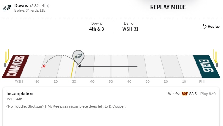 Sure, injuries can happen at any time, but that’s precisely why not giving the dirty Commanders a chance at injuring a key guy is just as important. Let’s also not act like the starters “getting in a rhythm” would have boded well for the playoffs. This offense has shown streaks this season just to fall back into their consistent inconsistency due to bad execution and bad playcalling. One game against a bad Commanders team wasn’t going to fix their problems.