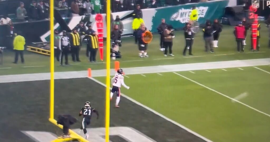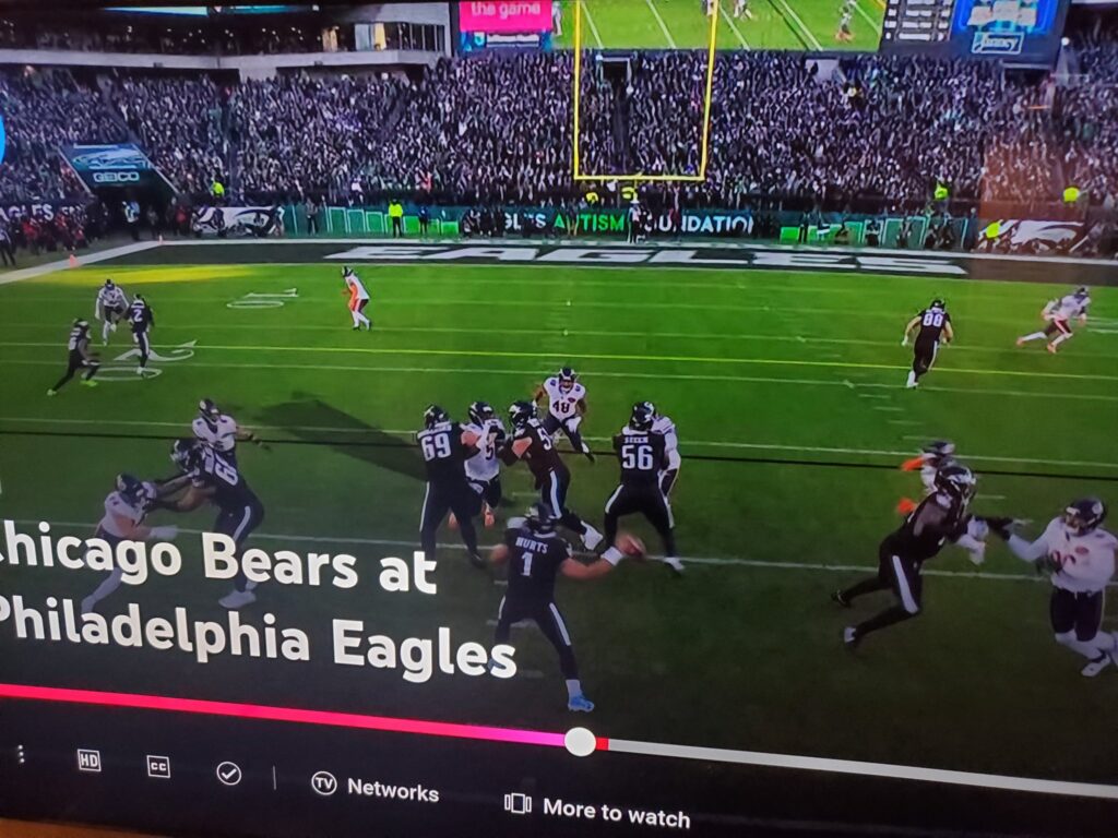 8) More early mistakes: Dallas Goedert and Jordan Mailata blowing a blocking assignment on a blown-up running play, then Hurts throwing behind DeVonta Smith on third down. There was a pre-snap signal from Hurts to Smitty, Chicago blitzed, and they couldn’t connect. Looked to me like they went hot and weren’t on the same page: