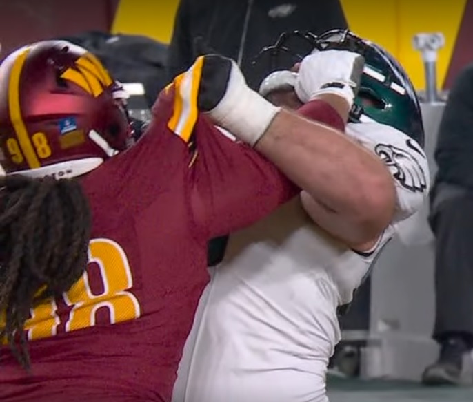 17) What a shitshow at the end of the third. First, Washington is called for interference on a play that wasn’t interference, then a there’s a borderline false start on a tush push. Fred Johnson then gets whistled for an obvious hold and the Eagles score anyway on 3rd and 15. This ball came out wobbly, but what a throw on the run. Jalen really put it in a great spot for Goedert to go up and snag: