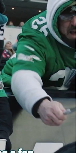 Listen, I’m not a parent so I’m not going to tell anyone how they should react to their son(?) experiencing a core memory with one of the greatest Eagles of all-time, but then again: Grow up, dude. What’re we doing here? Is it too much to ask that we live in the moment? Is it really the time to add an autograph to your card collection or an eBay store? Jesus. Credit to the social team trying to edit around this buffoon and add in an audio track so we didn’t have to hear the guy beg for a John Hancock. I know they weren’t trying to make the guy the focal point of a great deed from Brown, but it’s all I can watch. Each time I replay it back it makes my skin crawl and I break into a hot sweat. This guy screams autograph hound. Like those guys that sit outside the Four Seasons hoping to get a player to sign something so they can flip it online. Those guys are the worst of the worst.