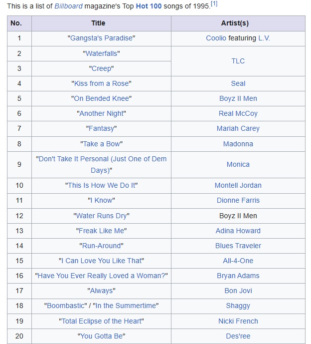 It has now been 30 years since the Cowboys last made the NFC Championship Game. It’s the longest title game drought in the entire conference. In fact, Zaire was still a country when the Cowboys last advanced beyond the divisional round. Here’s the Billboard year-end top 100 from that when that happened: