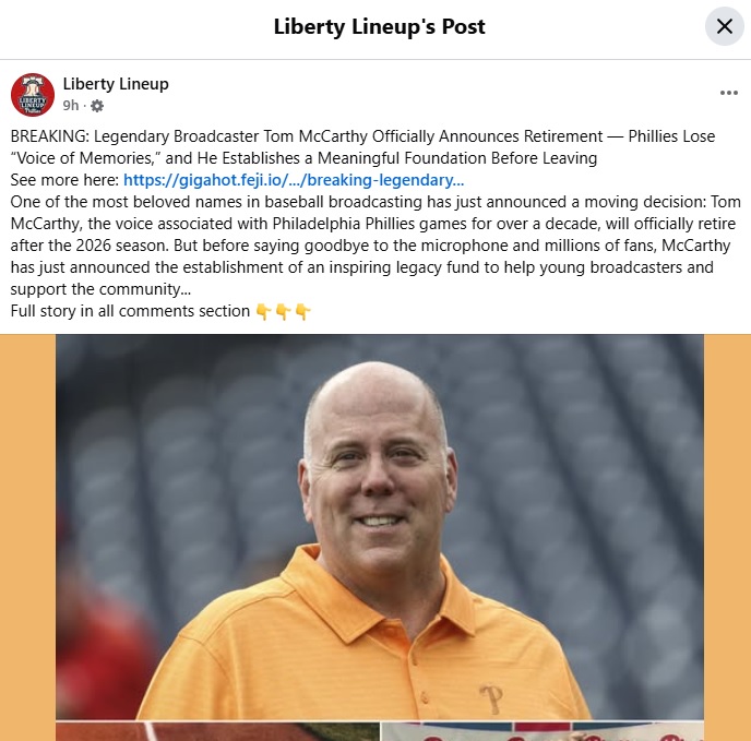 Contrary to What You May Have Seen from Bullshit Asian Scam Pages on Facebook, Tom McCarthy is Not Retiring