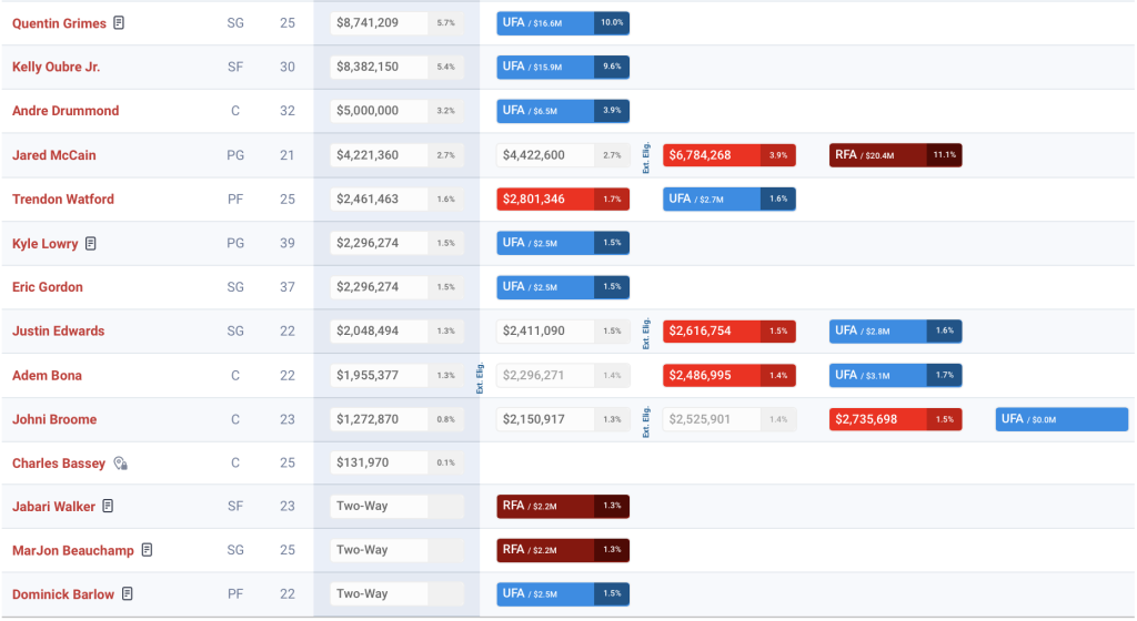 To be clear here, the first apron line is the number the Sixers would need to eclipse before needing to face any roster-building restrictions. They do not have much breathing room here, but will almost certainly make an effort to not take on money in trades at the risk of going over this number.