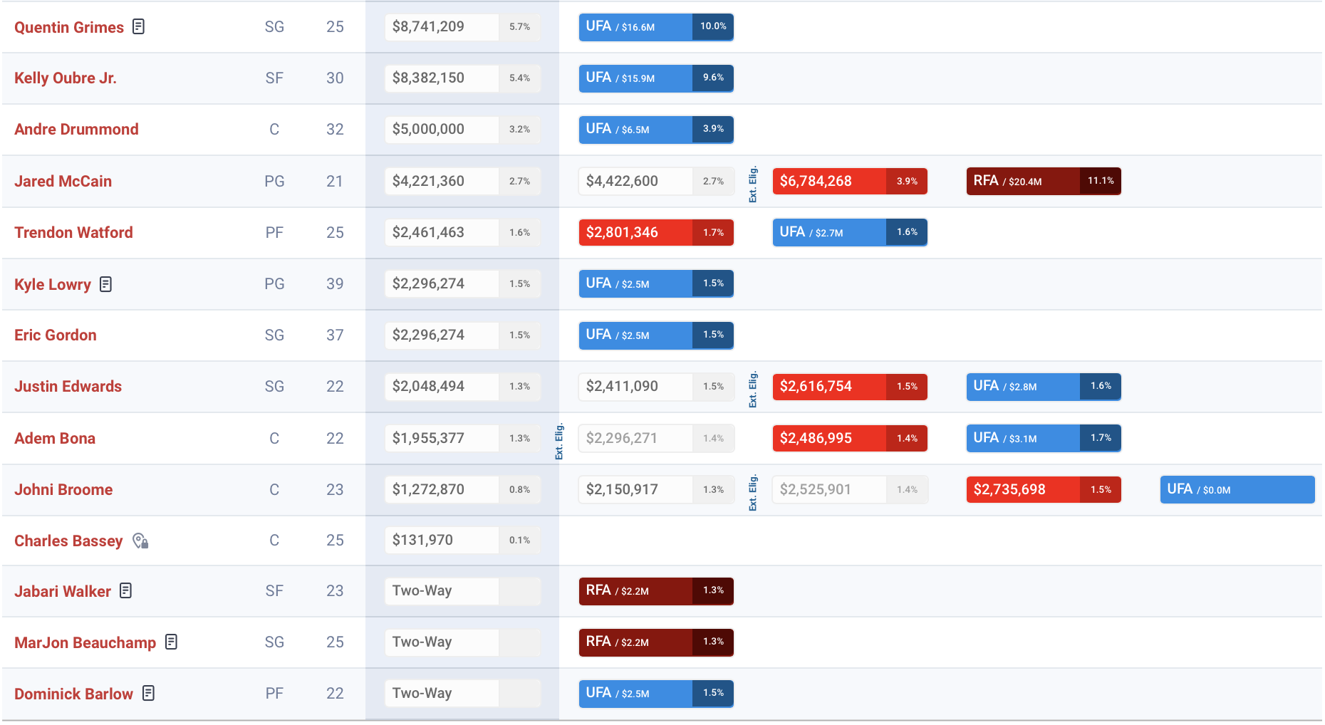 Daryl Morey refused to blink at the negotiation table with Quentin Grimes this past summer, which resulted in the 25-year-old opting in to play on a one-year, $8.7 million deal. Considering the fact that Grimes has come back to Earth of late, averaging 9.6 points per game on 41.8% shooting and 29.8% on three-point attempts over the past 19 games, this was the right call based on the high-figure contract he was requesting. Grimes also holds an inherent no-trade clause by nature of the deal, and it’s a safe bet that he will still be on this roster following the February 5th deadline.