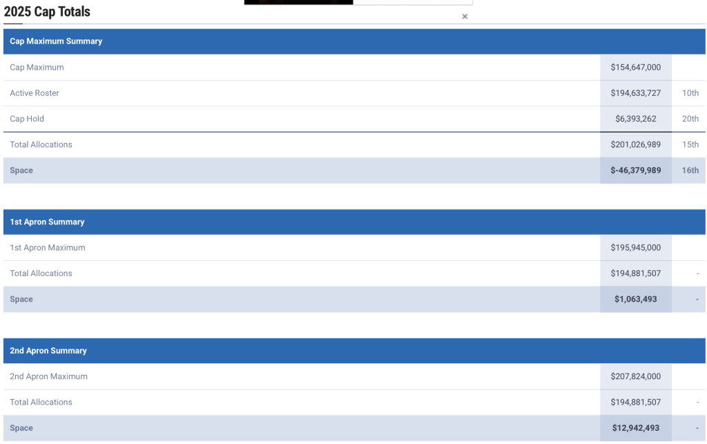 Taking a peek at the Sixers’ salary cap outlook per Spotrac.com: