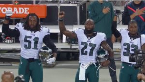 Eagles Malcolm Jenkins, Steven Means, and Ron Brooks Raise Fist in Protest During the National Anthem Jim Adair • Sep 19th, 2016