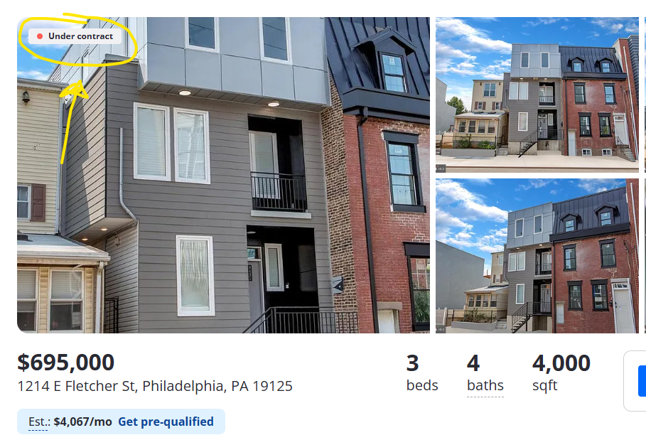 We have a breaking news situation just reported to Crossing Broad headquarters. At long last, the $1.25 million new construction Fishtown house is finally under contract:**