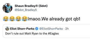 Eagles Shaun Bradley Lets Eliot Shorr-Parks Know the Eagles Already Have a QB1 Kyle Pagan • Mar 18th, 2022